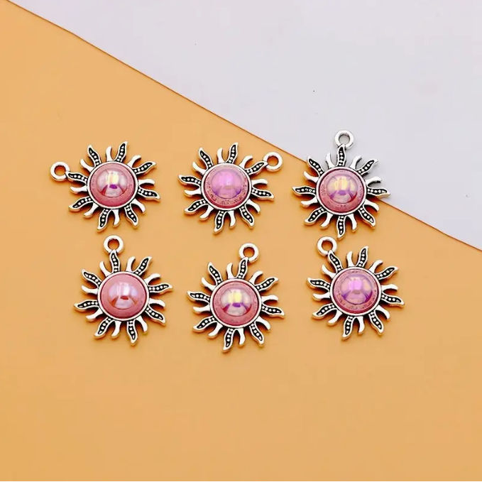 Boho Silver Sunburst - Pink Stone Earrings