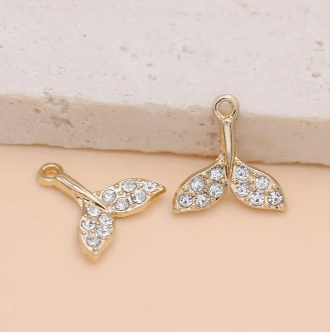 Whale Tail Charm Earrings with Crsytals & Pearl