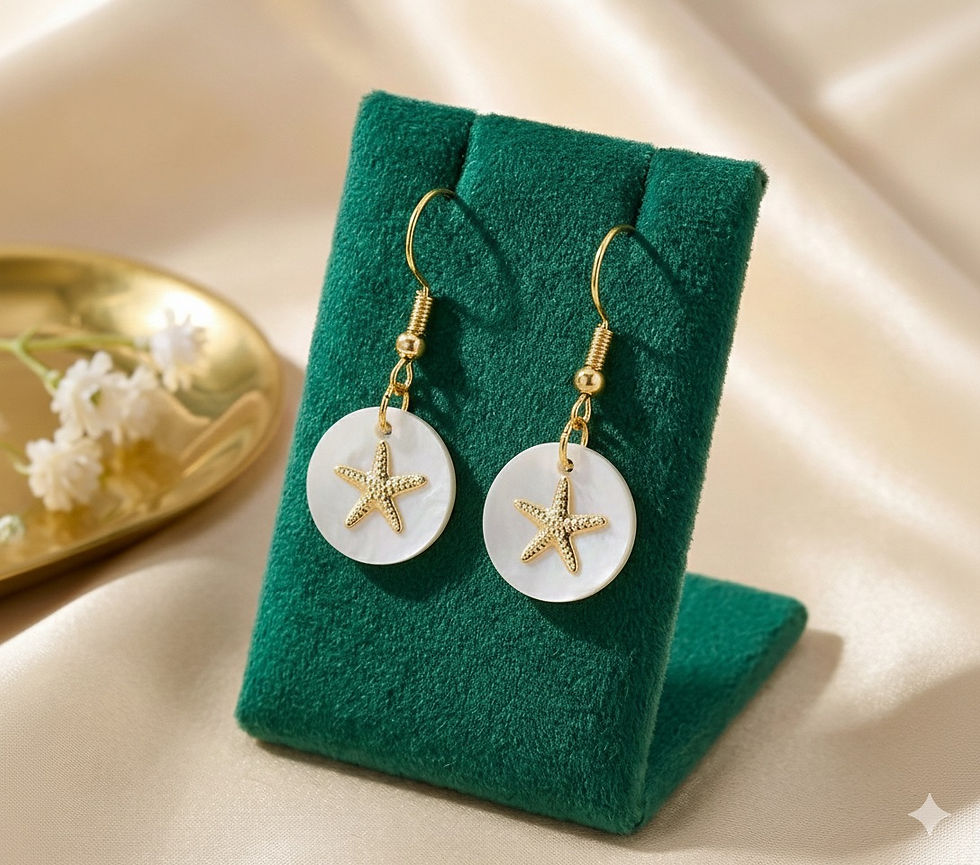 Freshwater Shell Pendant with Starfish Design on a Golden Necklace